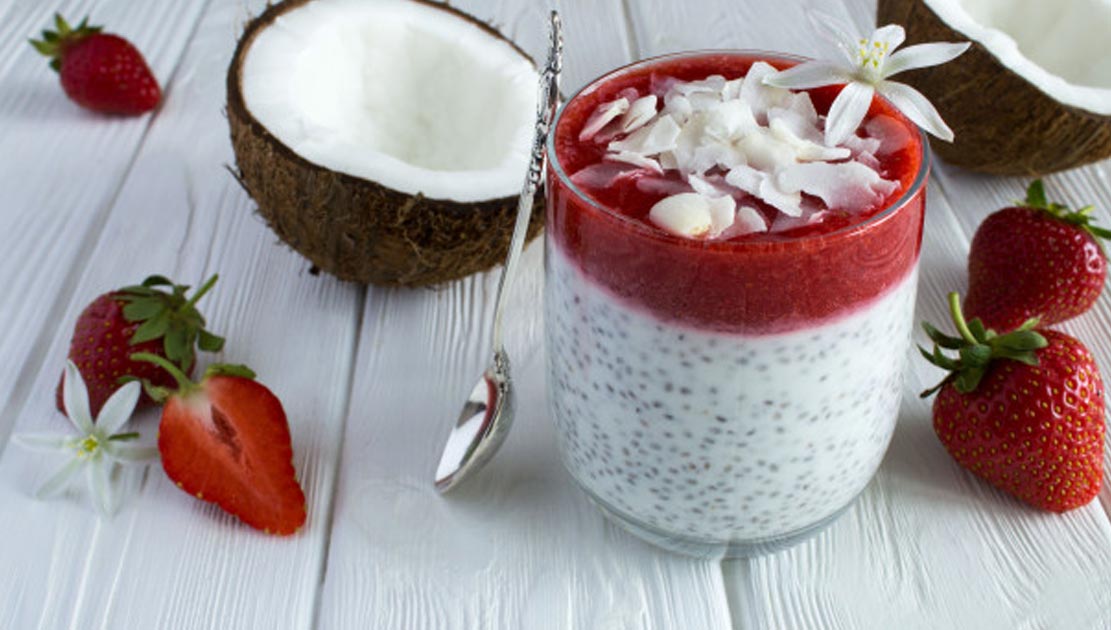 Кокосовый чиа-пудинг с клубникой , 220 (рецепт на 2 порции)